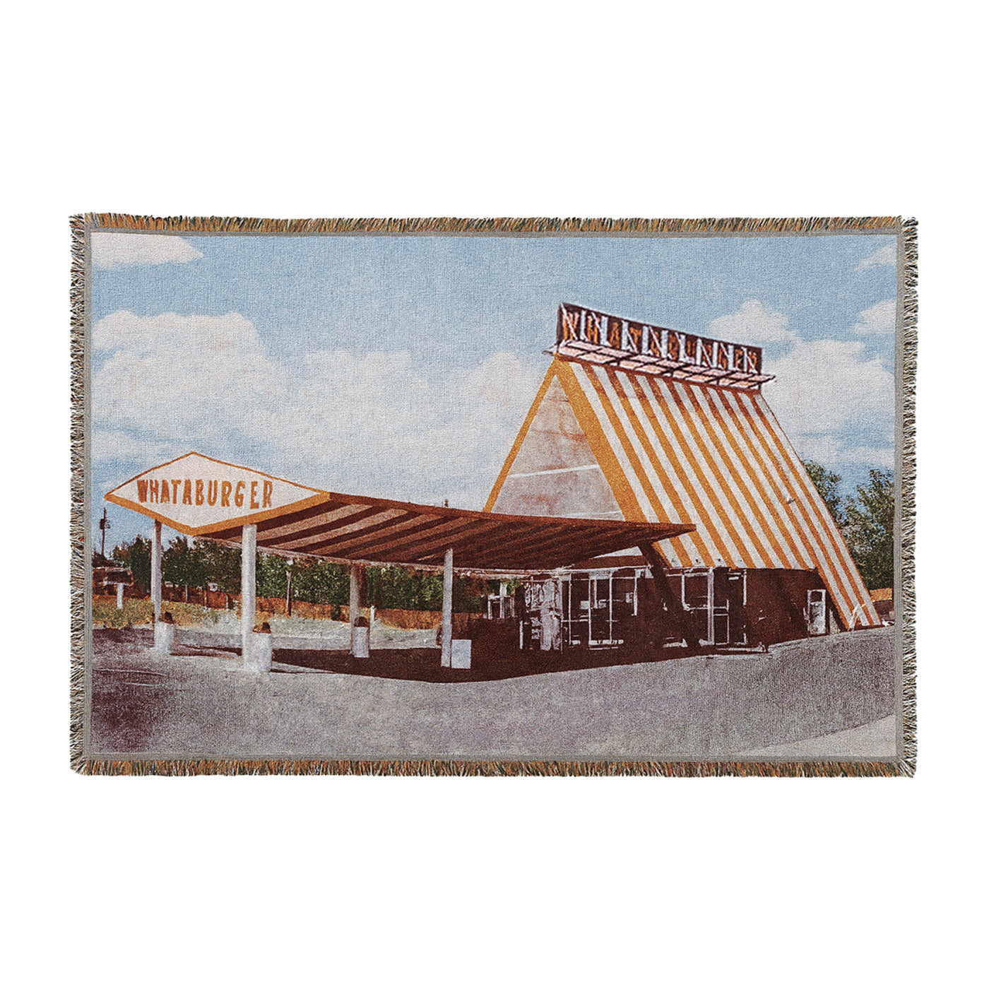 Cozy up with a playful nod to nostalgia! This woven A-Frame Throw Blanket features a retro graphic of the iconic Whataburger A-frame restaurant. Perfect for adding warmth and a bit of vintage charm to your space while celebrating a classic Texas favorite.