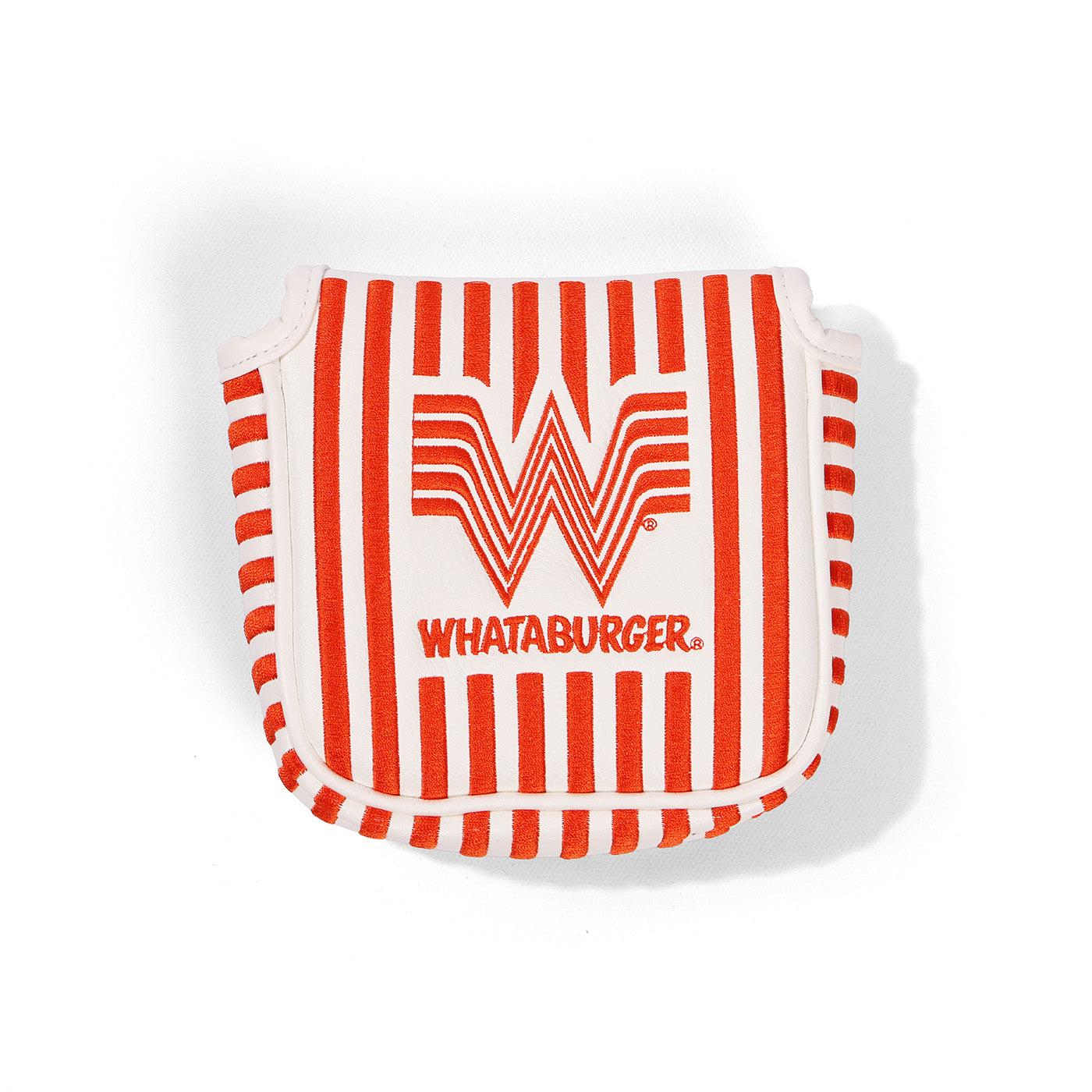 Keep your mallet putter game-ready with this striped cover that doubles as a collectible. Whataburger branding wraps the front and back, while a magnetic closure ensures your club stays protected in the bag. A must-have for golfers who eat, sleep, and swing orange and white.