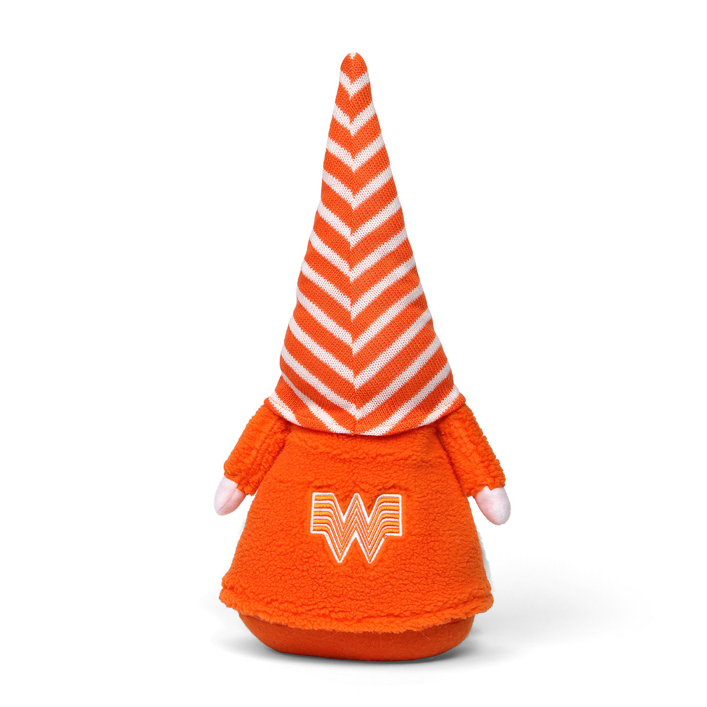 Meet your new pint-sized Whataburger buddy! This adorable stuffed gnome rocks an iconic orange and white striped sherpa coat, complete with the Whataburger logo proudly displayed on the back. Weighted for stability, this cheerful character makes the perfect desk companion, shelf decoration, or gift for any Whataburger fan. Bring a little playful charm to your space with this uniquely themed collectible that celebrates your favorite burger joint in the coziest way possible.