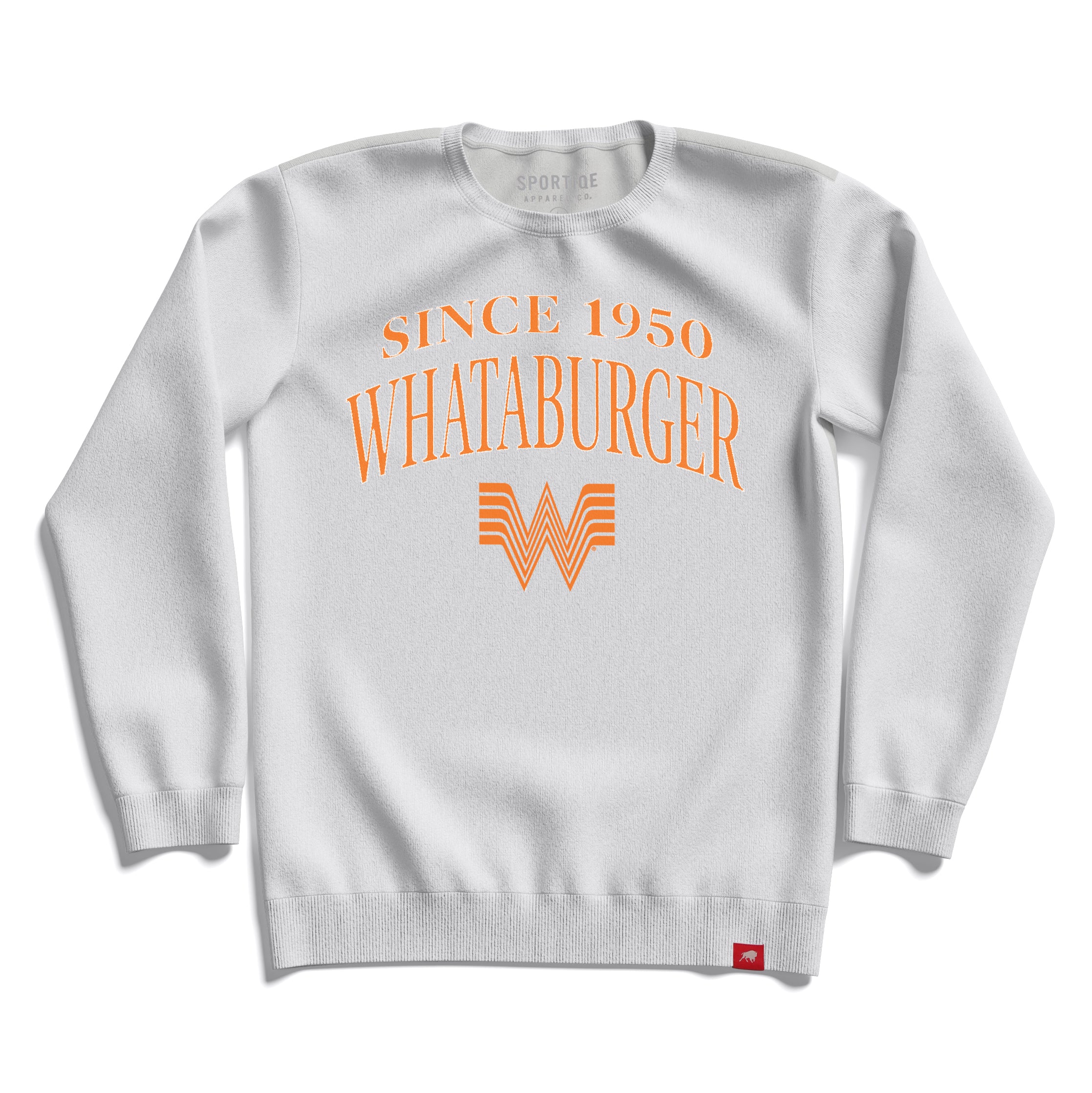 Sport your Whataburger fandom in timeless style with this crisp white crewneck featuring a signature design that honors our storied past. Comfy, casual, and packed with nostalgic charm, this crewneck is your go-to for showing the world you're a true burger fan.