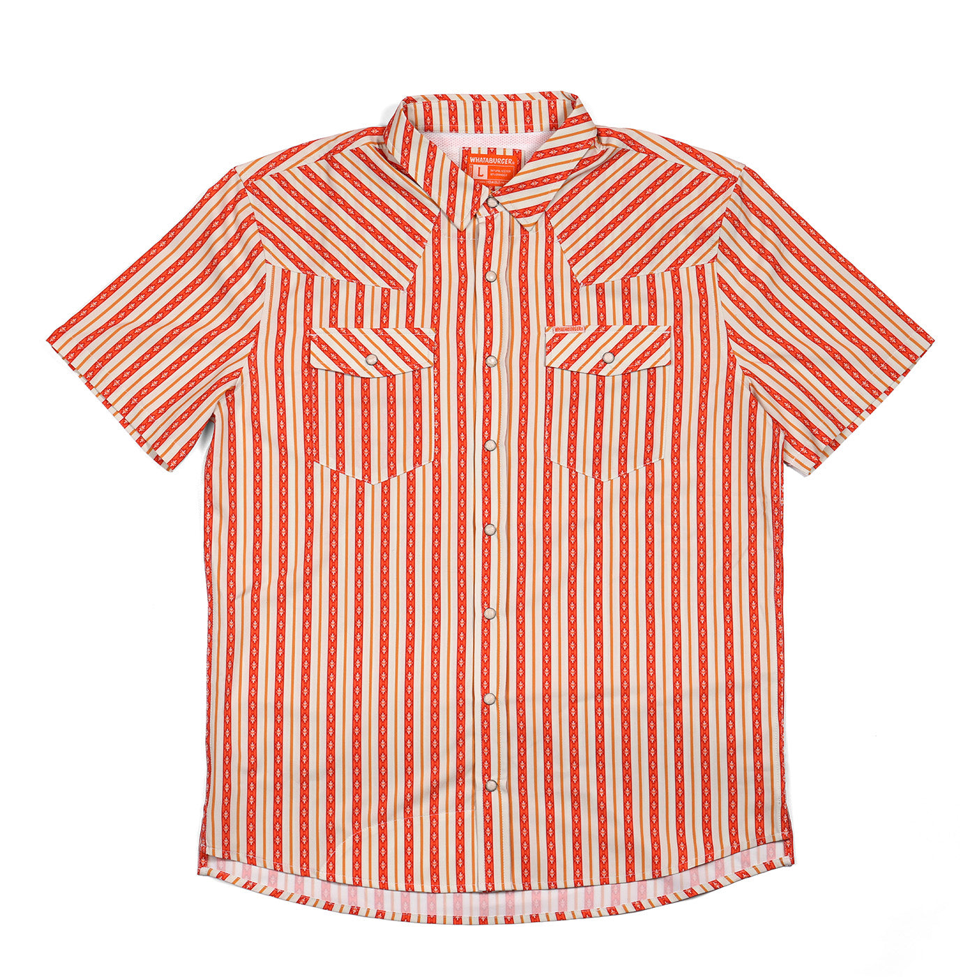 Add a splash of fun to your wardrobe with the Mesa Stripe Button Up. Featuring playful pearl snap buttons and subtle Whataburger logo accents woven into the classic mesa stripe pattern, this lightweight shirt keeps you comfy and stylish all day long. Perfect for those who like their fashion with a side of personality!